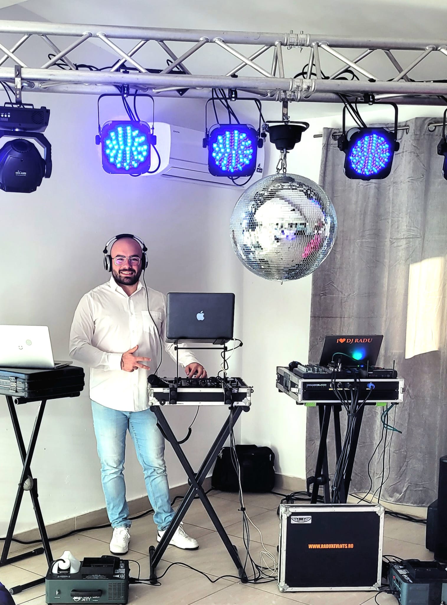 Radu Coiculescu este cunoscut nu doar pentru abilitățile sale inginerești, ci și pentru talentul său muzical diversificat. Ca DJ/MC, pianist și percuționist, el creează o ambianță unică, adaptându-se perfect la preferințele și atmosfera evenimentului dumneavoastră.